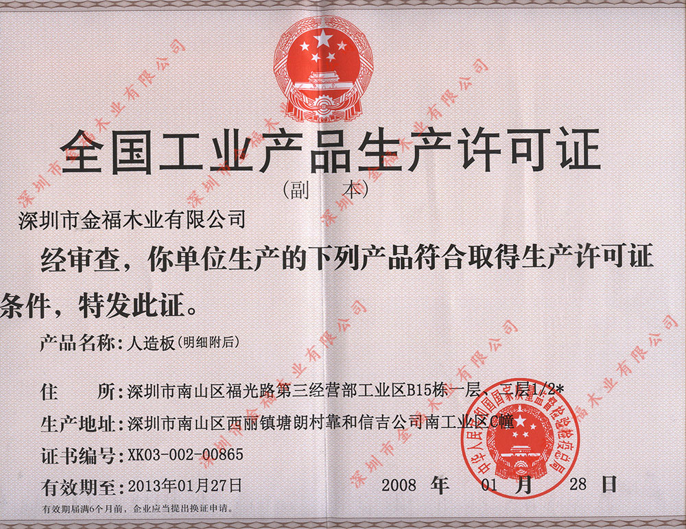 木地板生產(chǎn)許可證